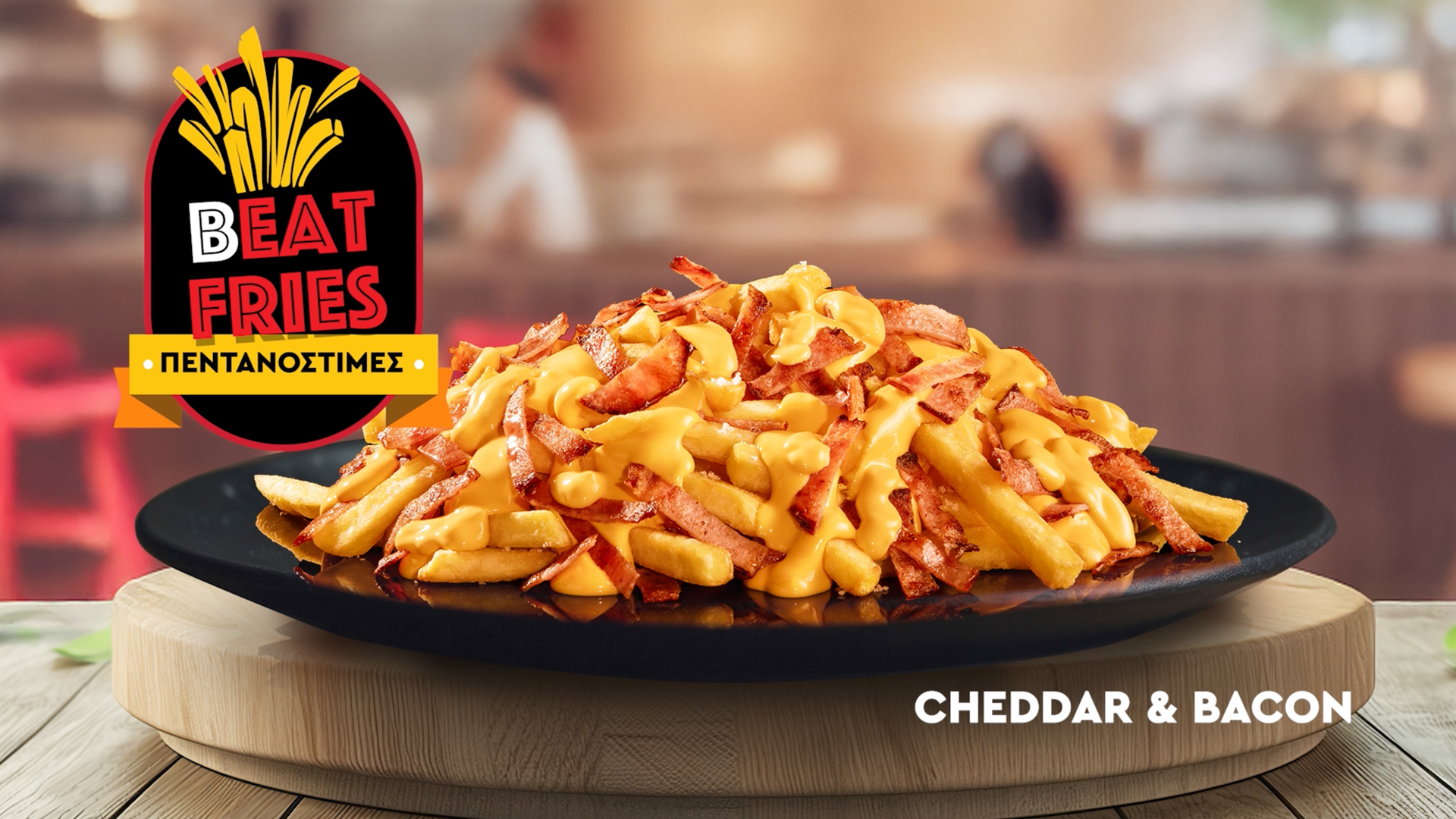 Πατάτες τηγανητές με cheddar & μπέικον